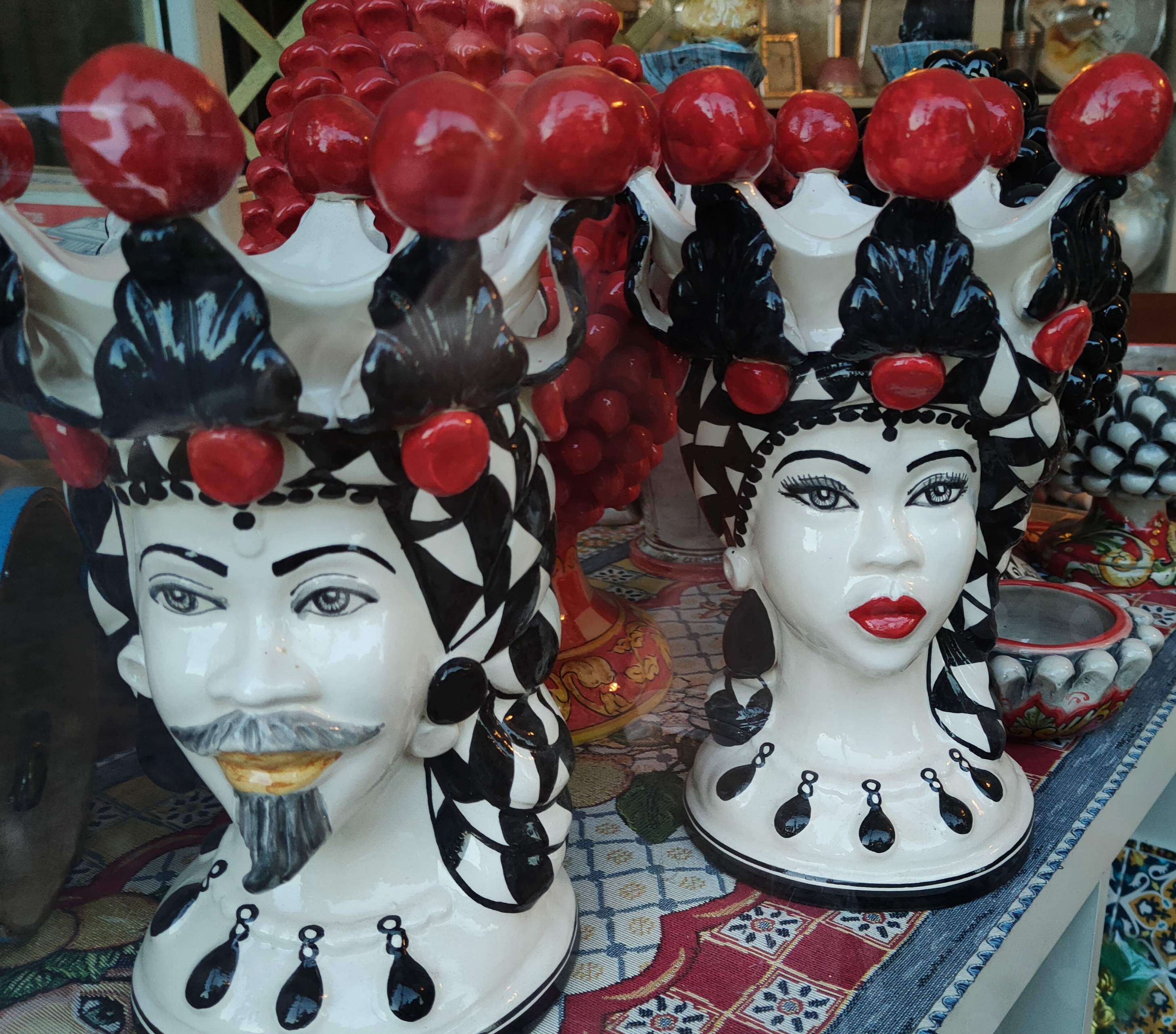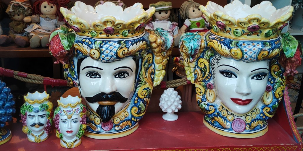 Testa di Moro – majestatyczna, ornamentalna, ręcznie malowana, ceramiczna głowa – nieodłączny element sycylijskich domów. Ustawiana na balkonach i tarasach, traktowana jako dekoracja sama w sobie lub jedyna w swoim rodzaju wielka donica – często wypełniona po brzegi aromatyczną bazylią.