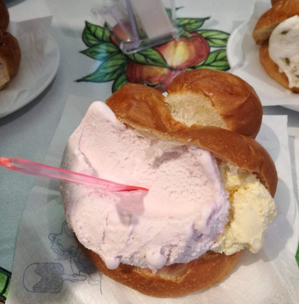 Chłonąc atmosferę miasta i włócząc się uroczymi uliczkami, warto zaglądać do lodziarni i cukierni, by schłodzić się tamtejszymi deserami. I tak na Sycylii obok lodów w wafelku lub kubeczku, można zamówić lody serwowane w słodkiej bułeczce zwanej brioche.